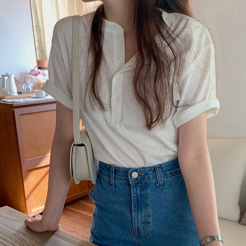 新品 ラウンドネックシングルブレストソリッド カラー♥カワイイ♥カジュアルTシャツ トップス 大人女子☆ ソリッドカラー ⦿韓国 オルチャン K-pop アイドル ジャケット スーツ ワンピース カーディガン ニット フーディー トレーナー キャミソール スカート シャツ ブラウス 5A7406144 | K clothig adult