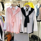 新品 カラーカジュアルシャツブラウス大人女子☆ ピュア ステッチ ⦿韓国 オルチャン K-pop アイドル ジャケット スーツ ワンピース カーディガン ニット フーディー トレーナー キャミソール スカート シャツ ブラウス 5B5091104