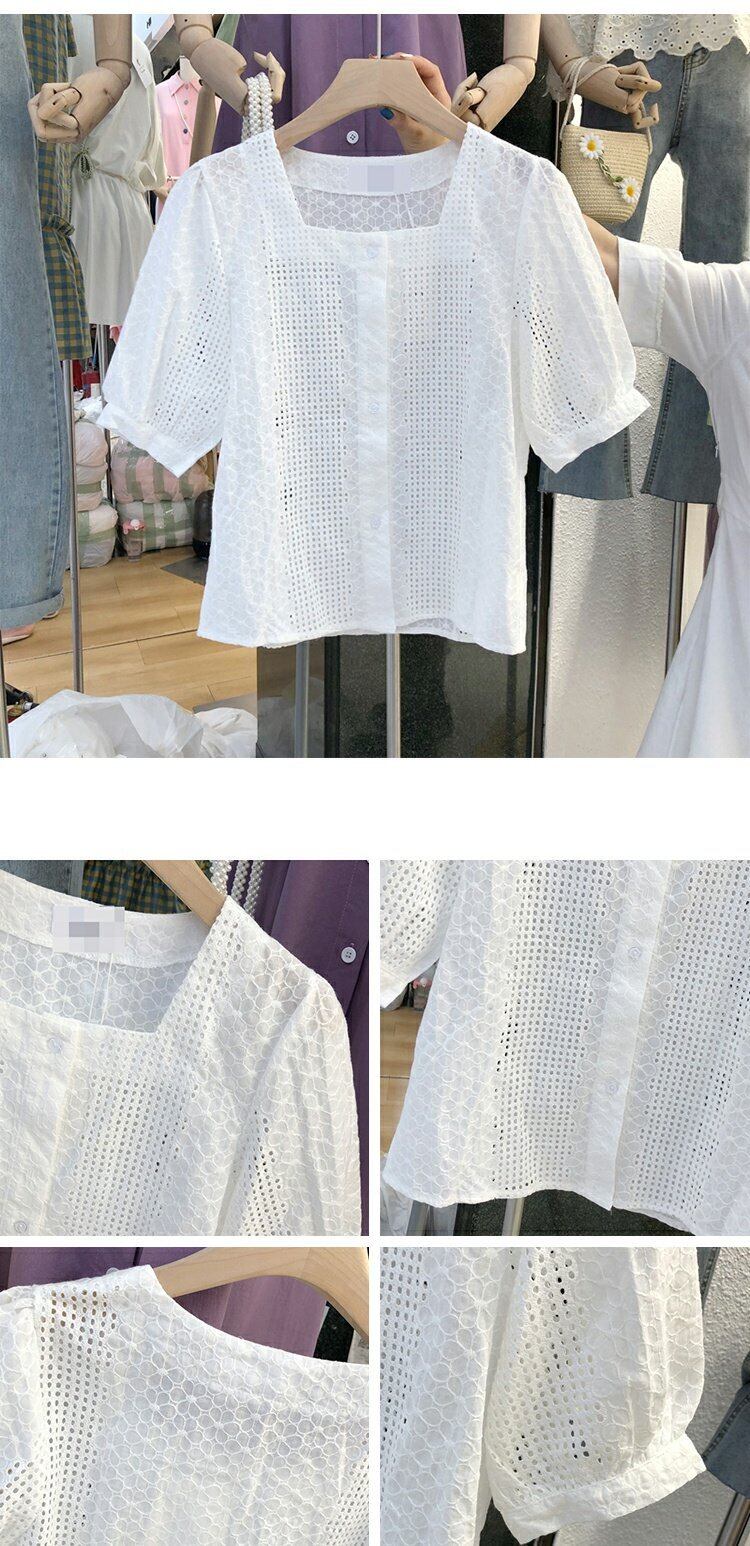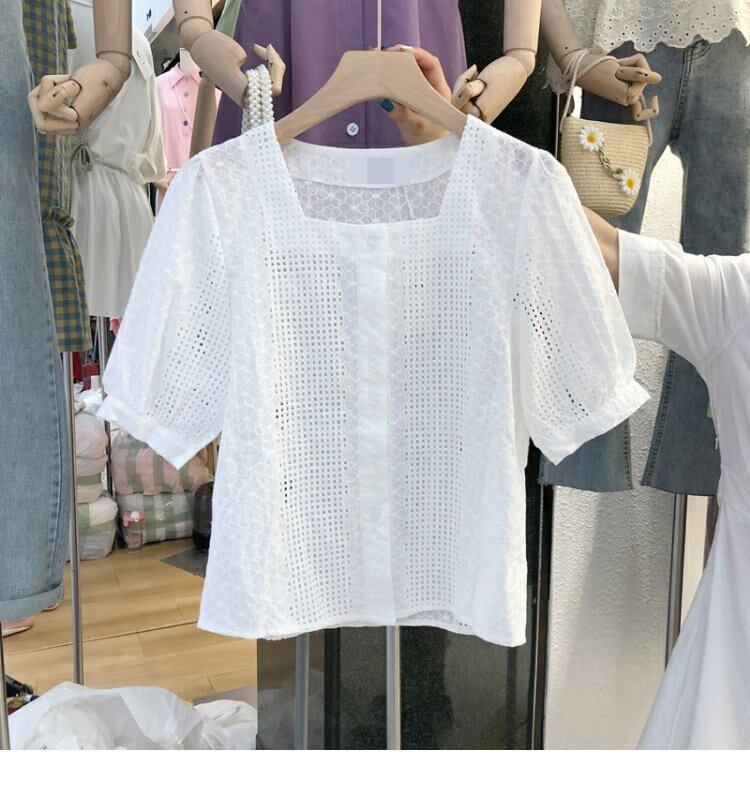 新品 ジャカードシャツブラウス刺繍トップス スウィート スクウェア ⦿韓国 オルチャン K-pop アイドル ジャケット スーツ ワンピース カーディガン ニット フーディー トレーナー キャミソール スカート シャツ ブラウス 5B8426653