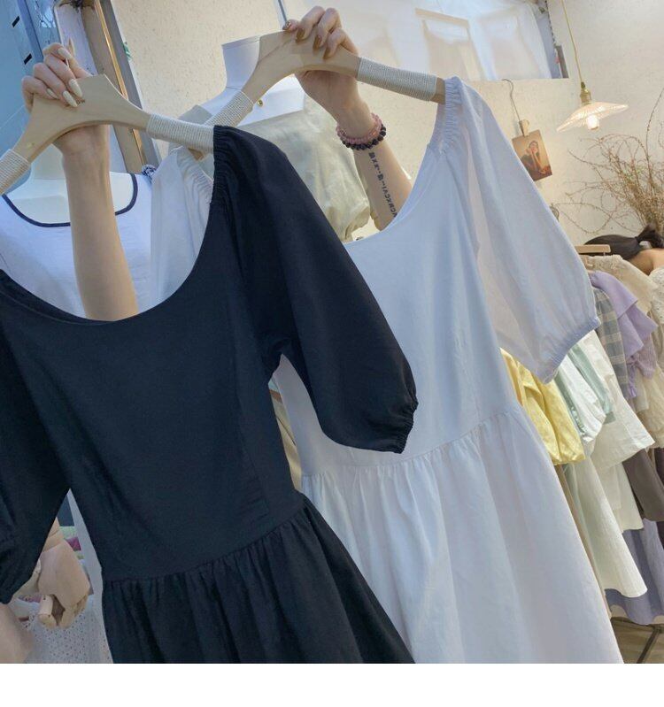 新品 ラウンドネック♡ストレッチスリーブワンピース コットン エラスティック 伸縮 ⦿韓国 オルチャン K-pop アイドル ジャケット スーツ ワンピース カーディガン ニット フーディー トレーナー キャミソール スカート シャツ ブラウス 5B5393244 | K clothig adult