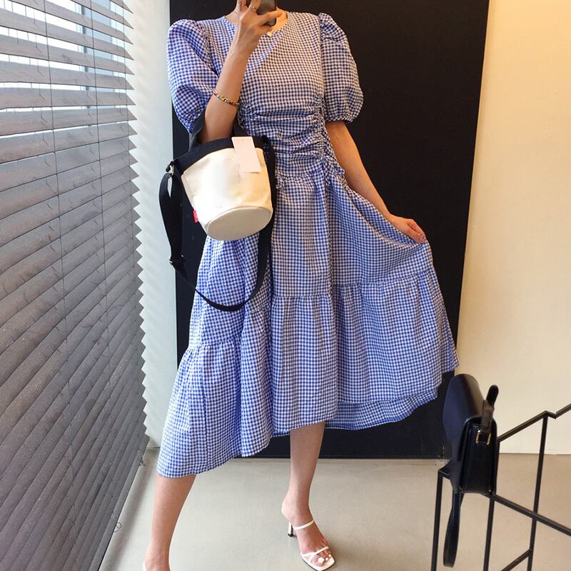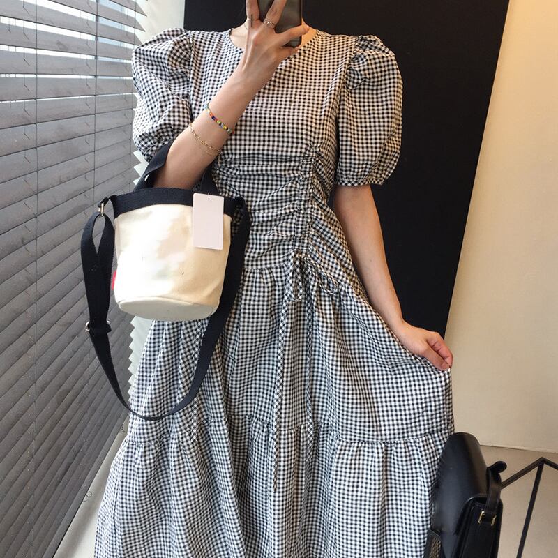 新品 スタンダードチェック柄ラウンドネックギャザー★♥カワイイ♥ロングスリーブ大人女子☆ レトロ ⦿韓国 オルチャン K-pop アイドル ジャケット スーツ ワンピース カーディガン ニット フーディー トレーナー キャミソール スカート シャツ ブラウス 5A9990261