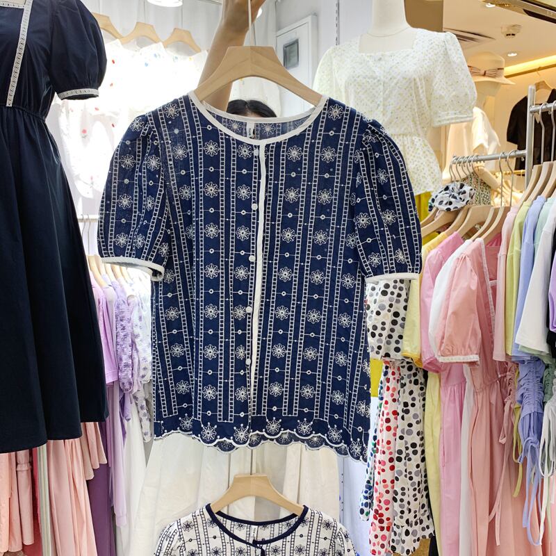 新品 カラー刺繍ラウンドネック半袖スリーブカーディガン ショート フラワーデザイン ⦿韓国 オルチャン K-pop アイドル ジャケット スーツ ワンピース カーディガン ニット フーディー トレーナー キャミソール スカート シャツ ブラウス 5B9797814