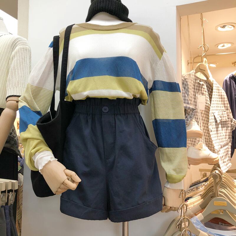 新品 ソリッド カラーストライプ大人女子☆ ロング ブラウス スウィート シルク ソリッドカラー ⦿韓国 オルチャン K-pop アイドル ジャケット スーツ ワンピース カーディガン ニット フーディー トレーナー キャミソール スカート シャツ ブラウス 5B8931810