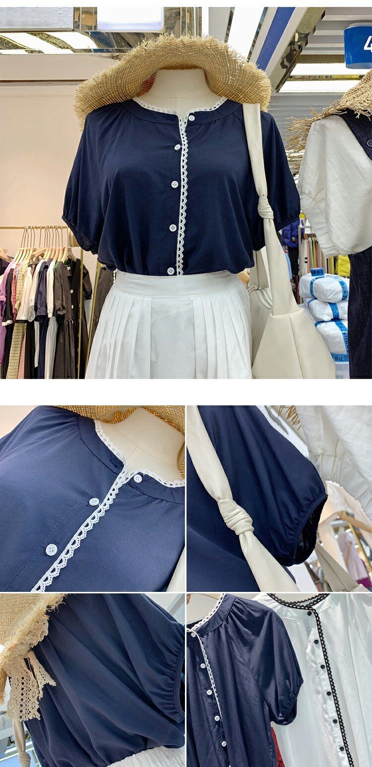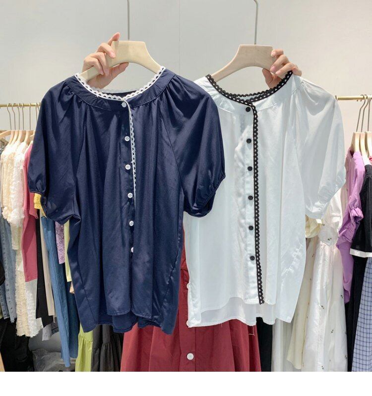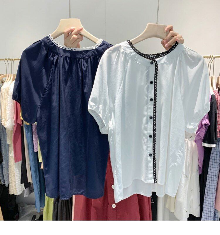 新品 レーススリーブシャツブラウス ステッチ ⦿韓国 オルチャン K-pop アイドル ジャケット スーツ ワンピース カーディガン ニット フーディー トレーナー キャミソール スカート シャツ ブラウス 5B1510990