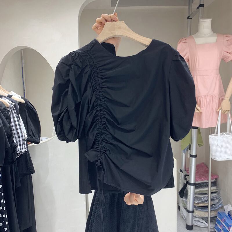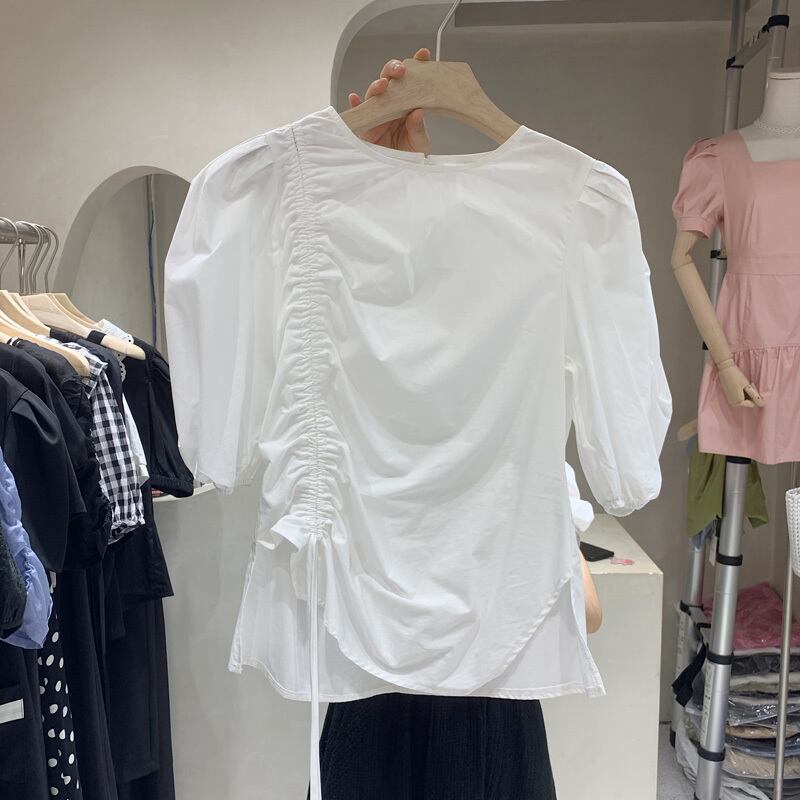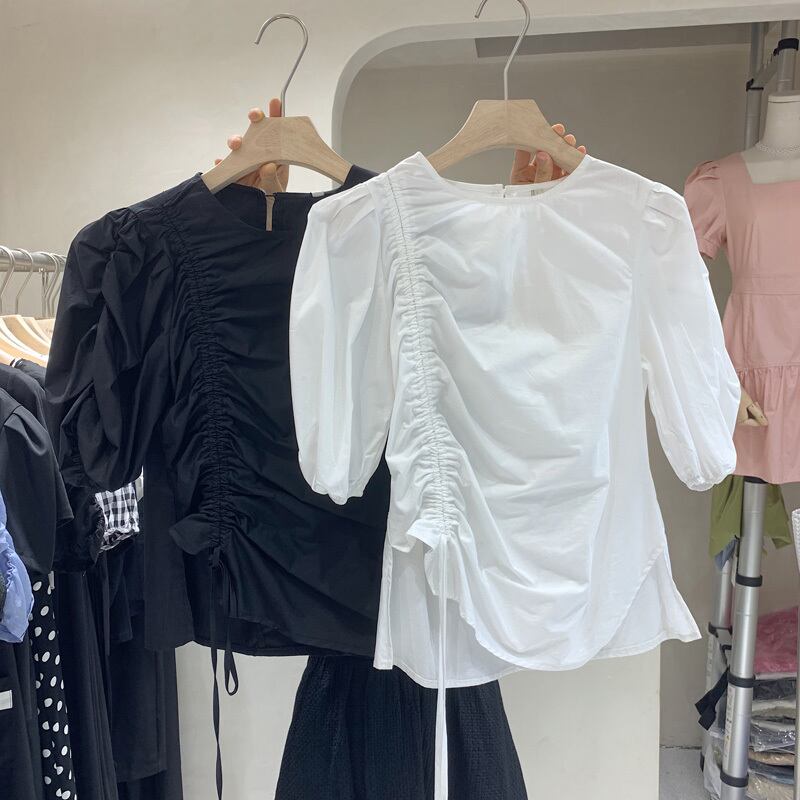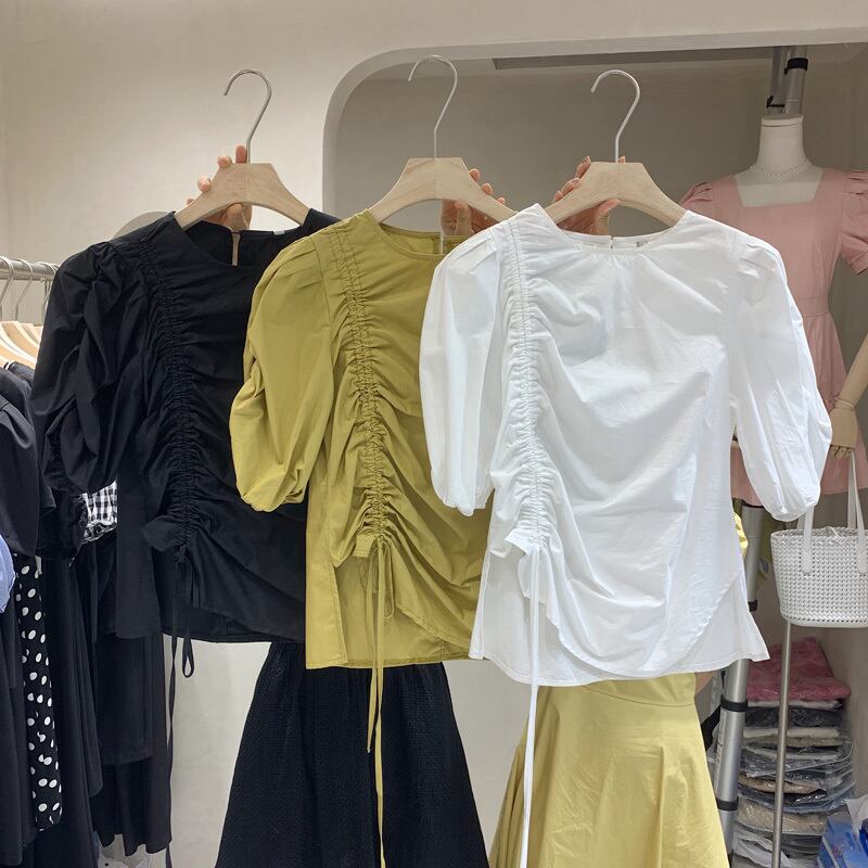 新品 サマーギャザーラウンドネックスリットシャツブラウス 夏物 ⦿韓国 オルチャン K-pop アイドル ジャケット スーツ ワンピース カーディガン ニット フーディー トレーナー キャミソール スカート シャツ ブラウス 5B2881012 | K clothig adult