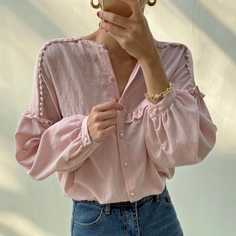 新品 白ラウンドネックプリーツシャツブラウス ロング ピンク ホワイト スウィート ステッチ ⦿韓国 オルチャン K-pop アイドル ジャケット スーツ ワンピース カーディガン ニット フーディー トレーナー キャミソール スカート シャツ ブラウス 5A1259594 | K clothig adult