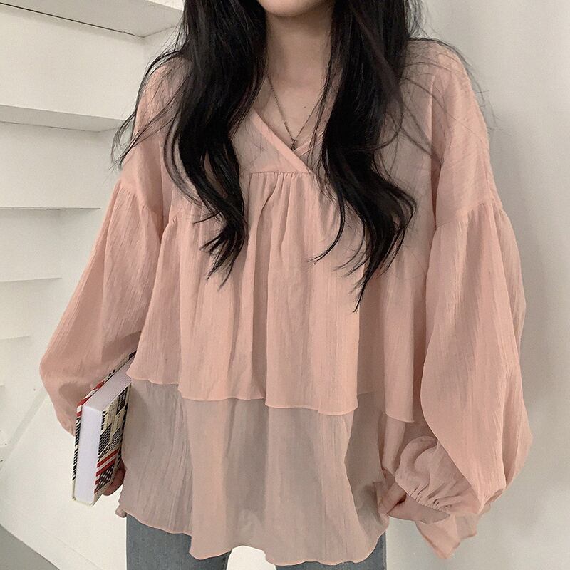 新品 Vネック♥カワイイ♥シャツブラウストップス 大人女子☆ エレガント ⦿韓国 オルチャン K-pop アイドル ジャケット スーツ ワンピース カーディガン ニット フーディー トレーナー キャミソール スカート シャツ ブラウス 5A7197181