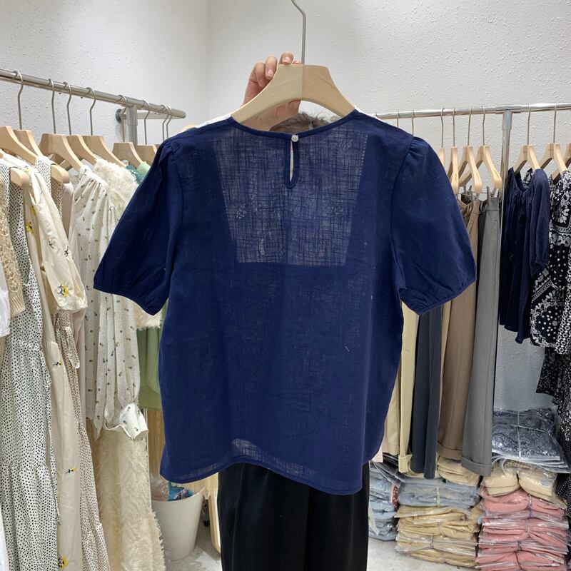 新品 サマースリーブ刺繍ボタンプルオーバー トップス 大人女子☆ コットン 夏物 ピュア ⦿韓国 オルチャン K-pop アイドル ジャケット スーツ ワンピース カーディガン ニット フーディー トレーナー キャミソール スカート シャツ ブラウス 5B8540499