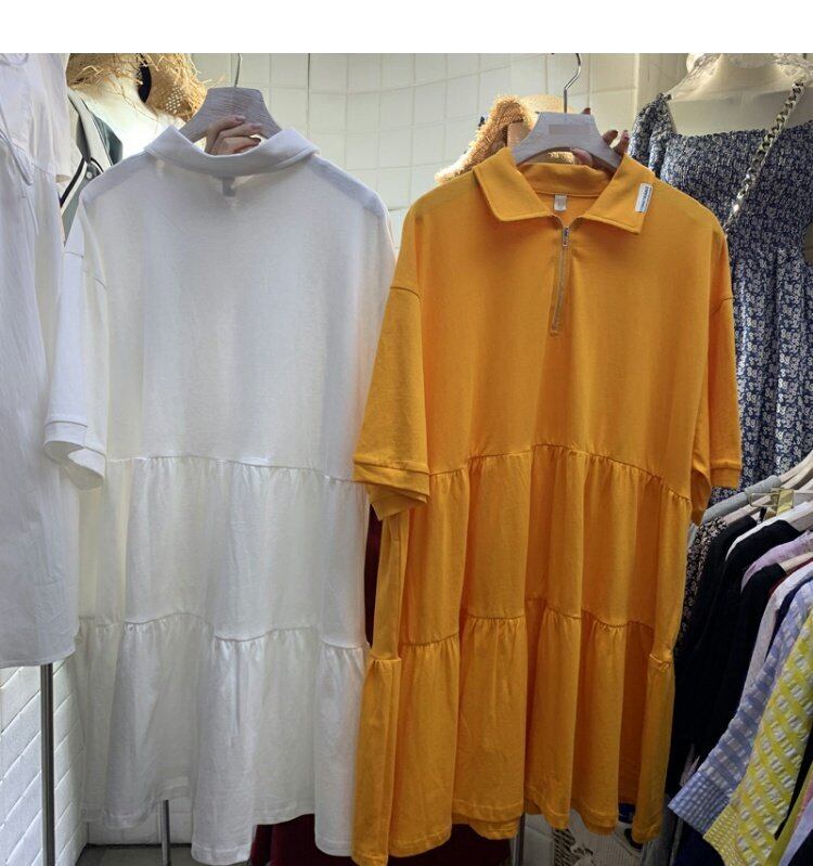 新品 サマージッパー半袖スリーブルーズドレス ワンピース ショート 夏物 ⦿韓国 オルチャン K-pop アイドル ジャケット スーツ ワンピース カーディガン ニット フーディー トレーナー キャミソール スカート シャツ ブラウス 5B7477259