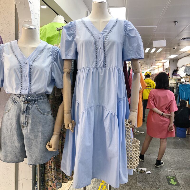 新品 サマーVネック♥カワイイ♥スリーブドレス ワンピース スウィート 夏物 ピュア ⦿韓国 オルチャン K-pop アイドル ジャケット スーツ ワンピース カーディガン ニット フーディー トレーナー キャミソール スカート シャツ ブラウス 5B5702152