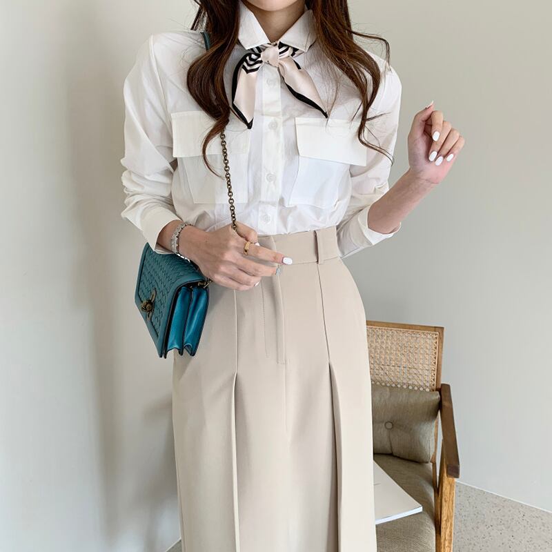 新品 スタンダードシャツブラウスプリーツスカート ロング レトロ ⦿韓国 オルチャン K-pop アイドル ジャケット スーツ ワンピース カーディガン ニット フーディー トレーナー キャミソール スカート シャツ ブラウス 5A4682471 | K clothig adult