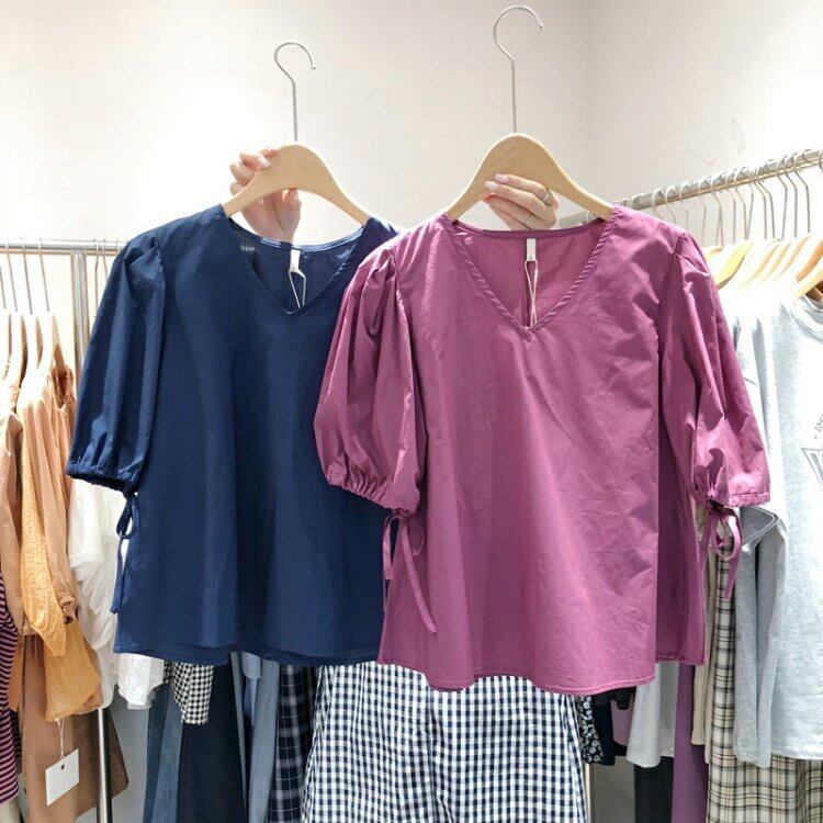 新品 カラーVネック♥カワイイ♥スリーブトップス 大人女子☆ ピュア ⦿韓国 オルチャン K-pop アイドル ジャケット スーツ ワンピース カーディガン ニット フーディー トレーナー キャミソール スカート シャツ ブラウス 5B7064515
