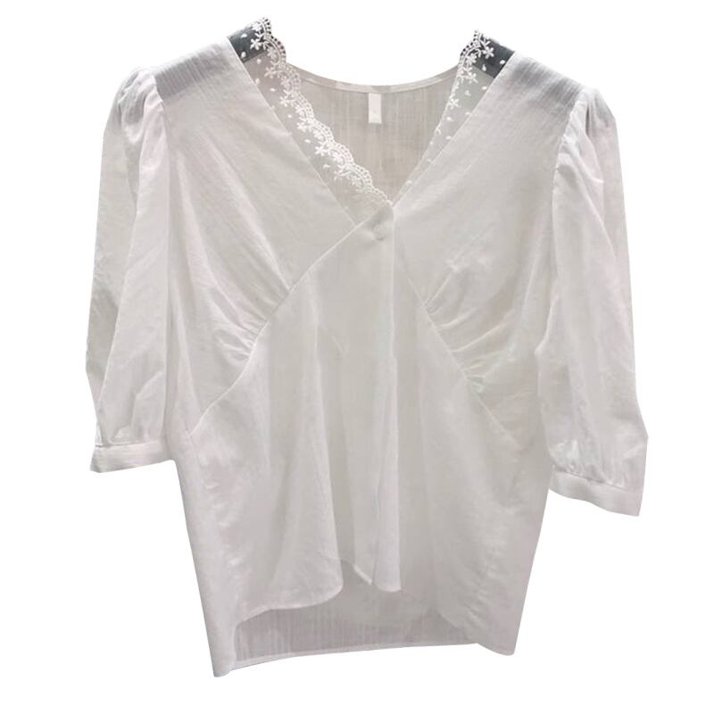 新品 レースVネックシャツブラウス大人女子☆ ステッチ ⦿韓国 オルチャン K-pop アイドル ジャケット スーツ ワンピース カーディガン ニット フーディー トレーナー キャミソール スカート シャツ ブラウス 5B2108703