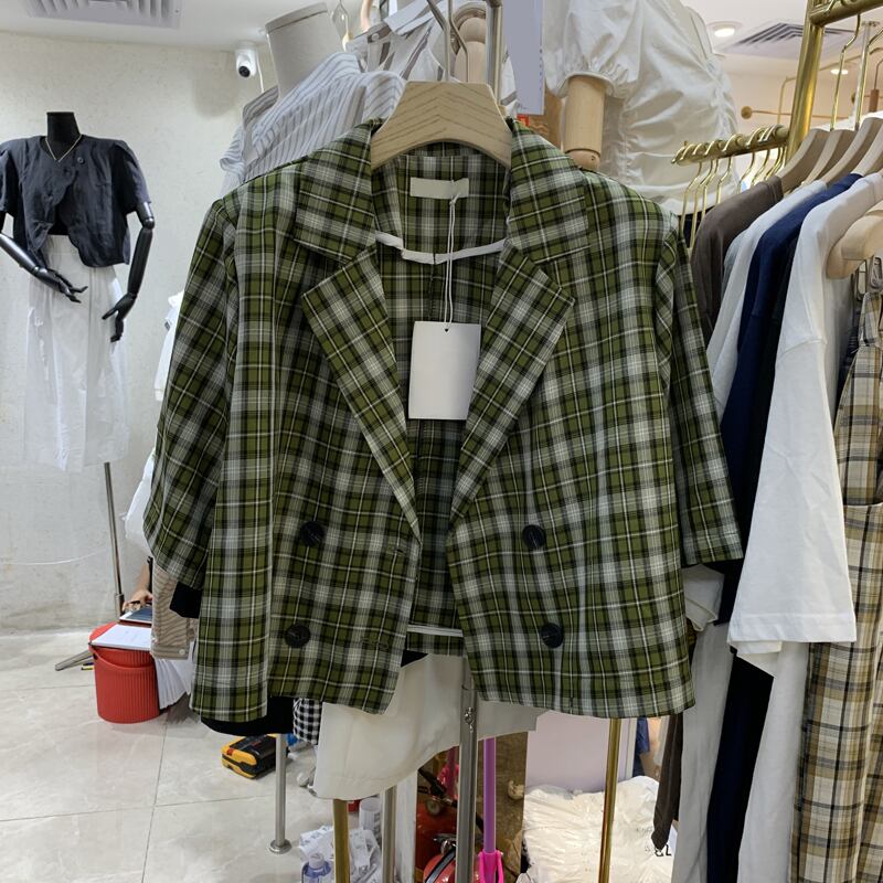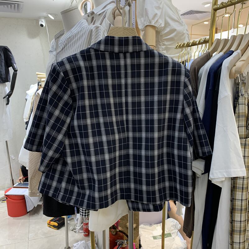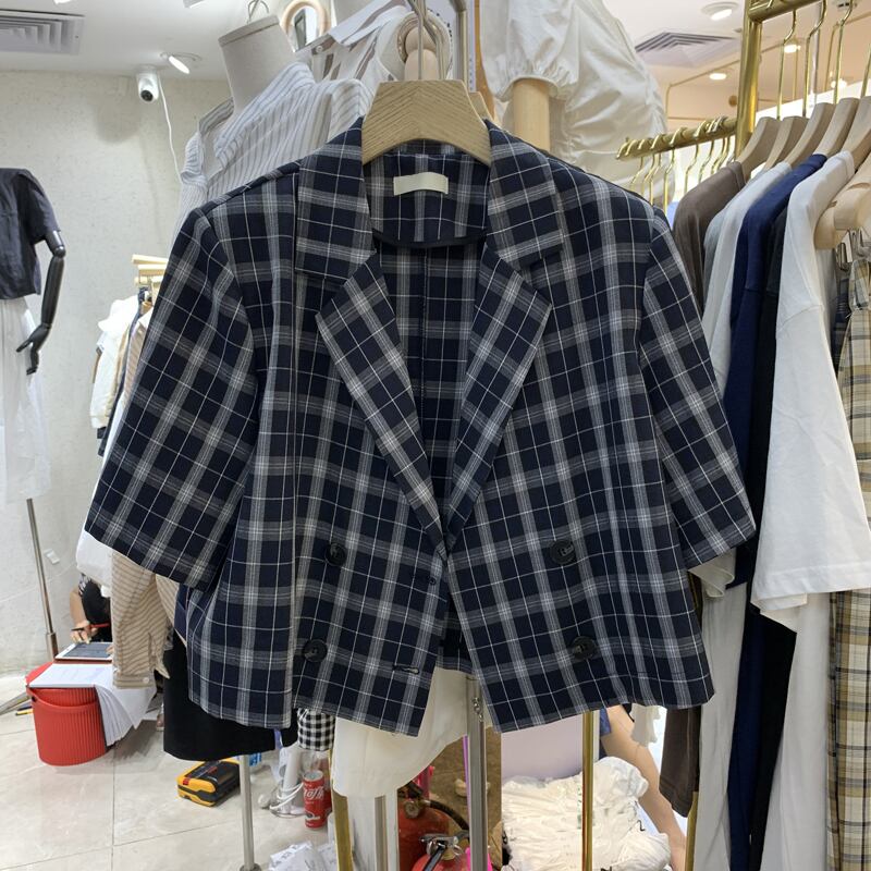 新品 ショートダブルブレストチェック柄ジャケット ⦿韓国 オルチャン K-pop アイドル ジャケット スーツ ワンピース カーディガン ニット フーディー トレーナー キャミソール スカート シャツ ブラウス 5B9365121