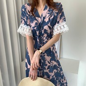 新品 スタンダードプリント柄Vネック★レース レトロ ステッチ ⦿韓国 オルチャン K-pop アイドル ジャケット スーツ ワンピース カーディガン ニット フーディー トレーナー キャミソール スカート シャツ ブラウス 5A9975093