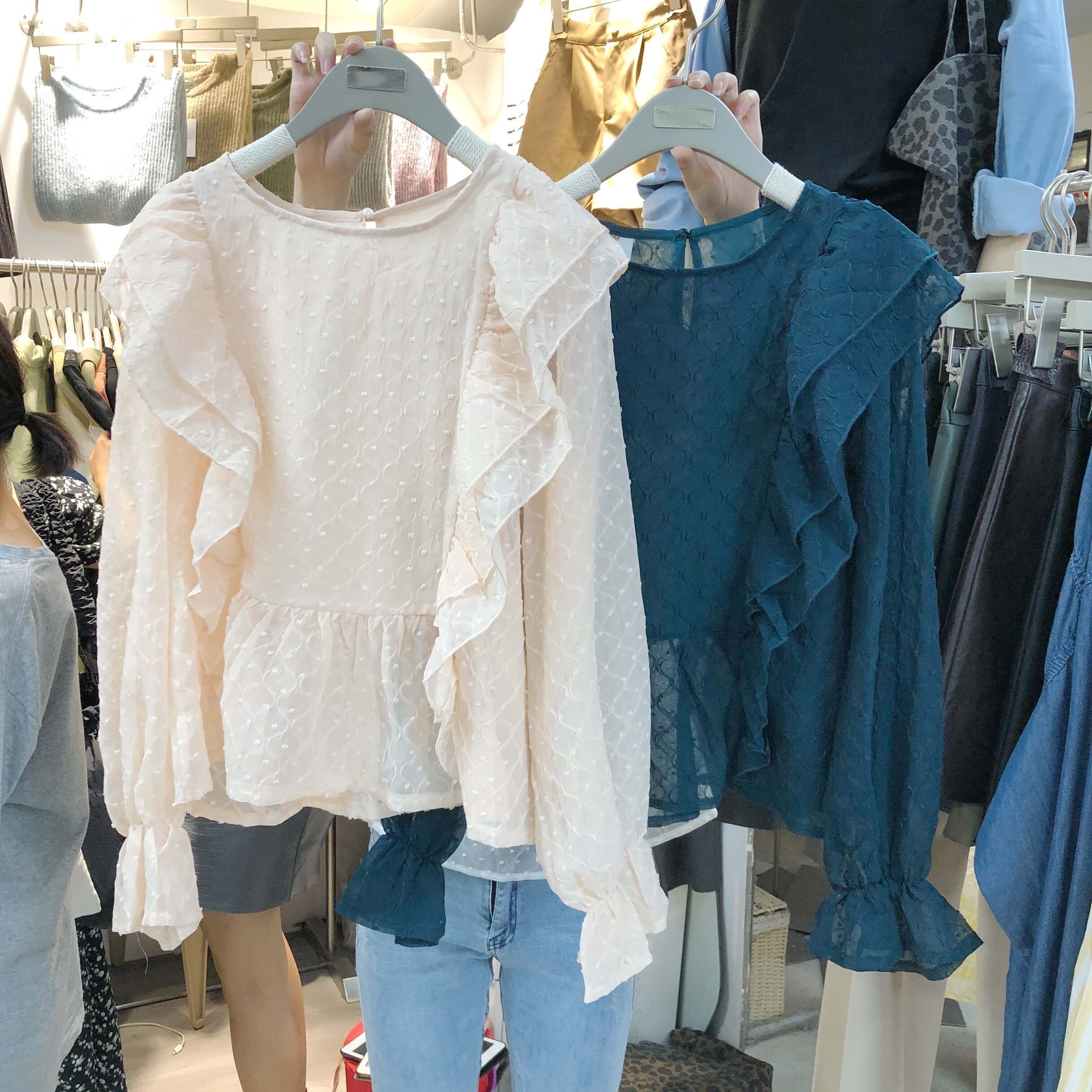 新品 カラーラウンドネックシフォントップス 大人女子☆ スウィート ピュア ⦿韓国 オルチャン K-pop アイドル ジャケット スーツ ワンピース カーディガン ニット フーディー トレーナー キャミソール スカート シャツ ブラウス 5B9680618
