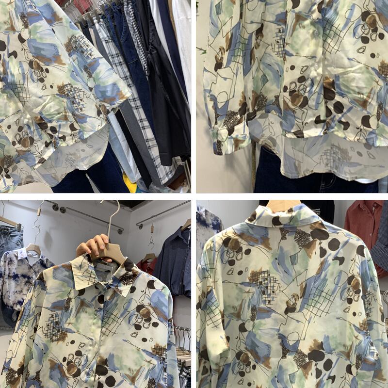新品 トップスオータム長袖スリーブプリントシングルブレストシャツブラウス ロング 秋物 ⦿韓国 オルチャン K-pop アイドル ジャケット スーツ ワンピース カーディガン ニット フーディー トレーナー キャミソール スカート シャツ ブラウス 5B7538992