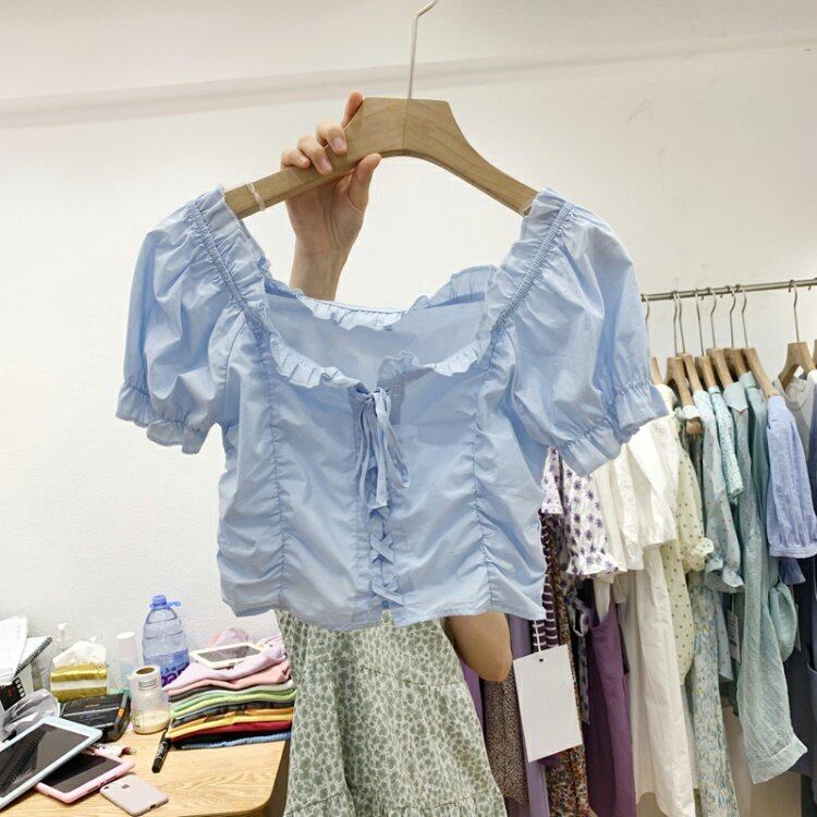 新品 スリーブショートプルオーバー シャツブラウス スウィート スクウェア ⦿韓国 オルチャン K-pop アイドル ジャケット スーツ ワンピース カーディガン ニット フーディー トレーナー キャミソール スカート シャツ ブラウス 5B6670369