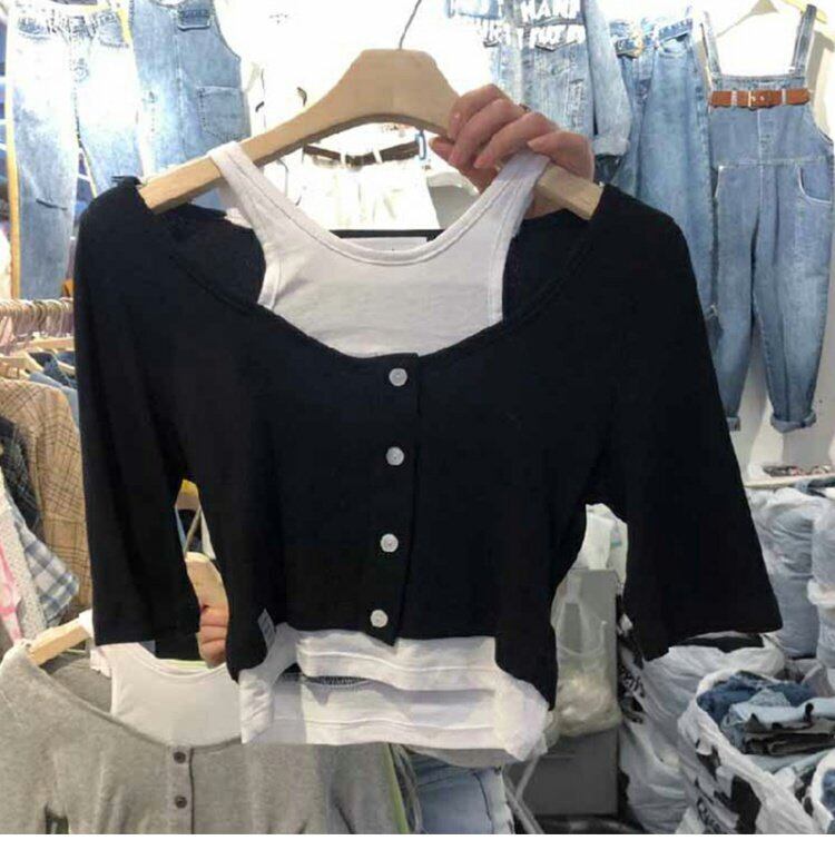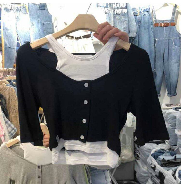 新品 ♡ショートトップス ステッチ ⦿韓国 オルチャン K-pop アイドル ジャケット スーツ ワンピース カーディガン ニット フーディー トレーナー キャミソール スカート シャツ ブラウス 5B9492851 | K clothig adult