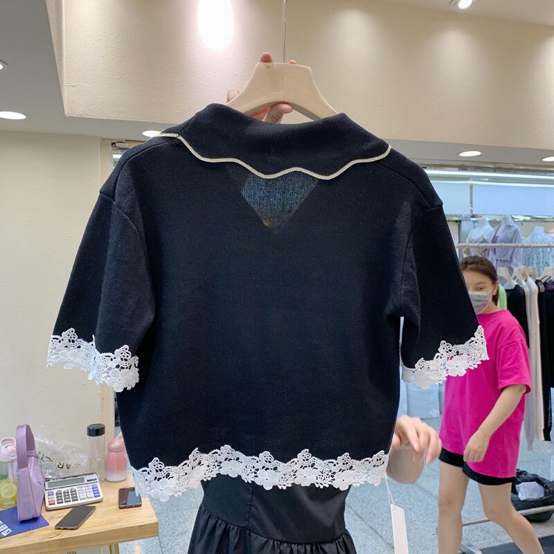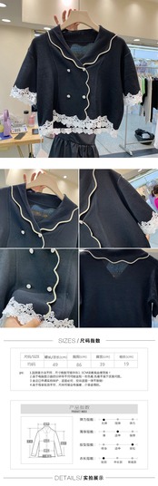 新品 サマーサイドダブルブレストレースショートニットブラウス 夏物 ステッチ ⦿韓国 オルチャン K-pop アイドル ジャケット スーツ ワンピース カーディガン ニット フーディー トレーナー キャミソール スカート シャツ ブラウス 5B2008027