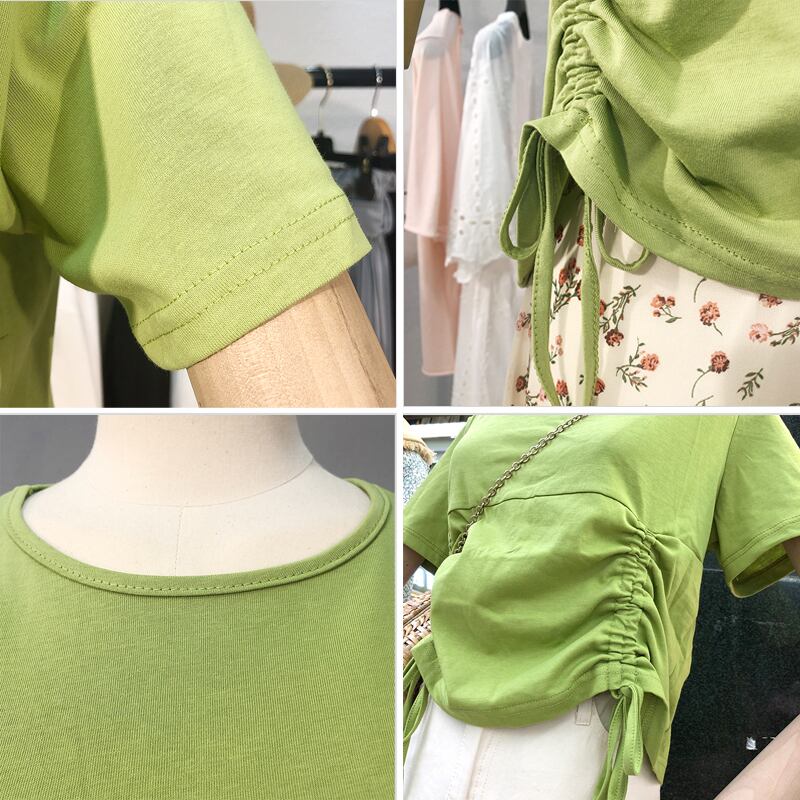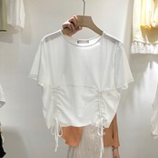 新品 ♡♥カワイイ♥ラウンドネックギャザー半袖スリーブプルオーバー Tシャツ トップス ショート ⦿韓国 オルチャン K-pop アイドル ジャケット スーツ ワンピース カーディガン ニット フーディー トレーナー キャミソール スカート シャツ ブラウス 5B2437985 | K clothig adult