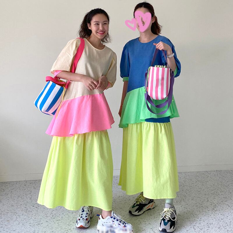 新品 ラウンドネックカラーラッフルロングスカート ステッチ ⦿韓国 オルチャン K-pop アイドル ジャケット スーツ ワンピース カーディガン ニット フーディー トレーナー キャミソール スカート シャツ ブラウス 5A4798657