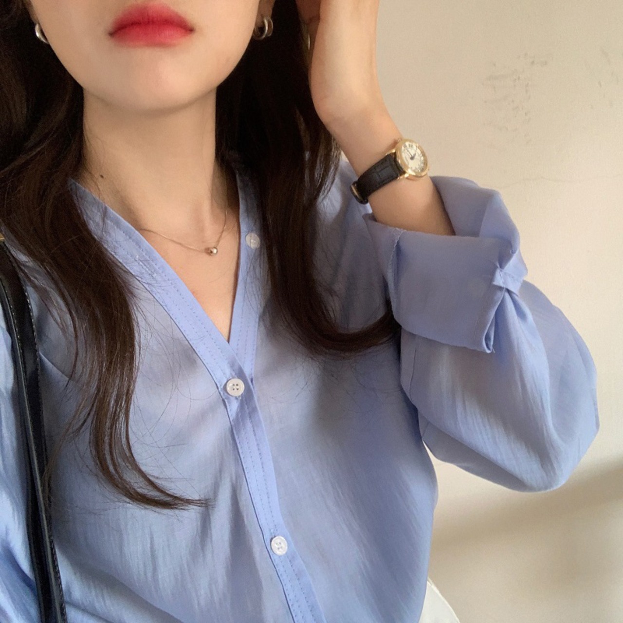 新品 カラー♥カワイイ♥Vネックカジュアルシャツブラウス ロング ⦿韓国 オルチャン K-pop アイドル ジャケット スーツ ワンピース カーディガン ニット フーディー トレーナー キャミソール スカート シャツ ブラウス 5A3921787