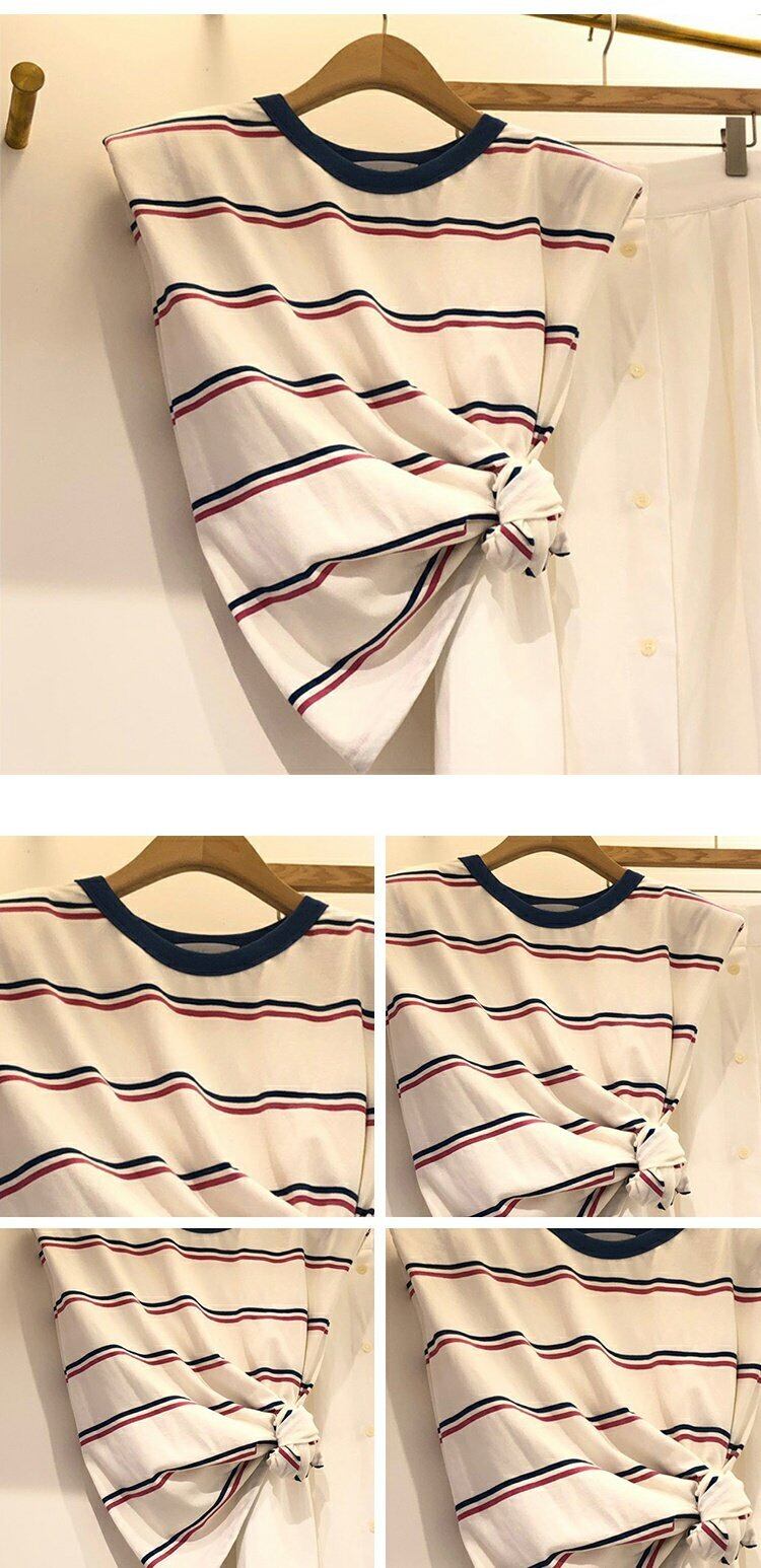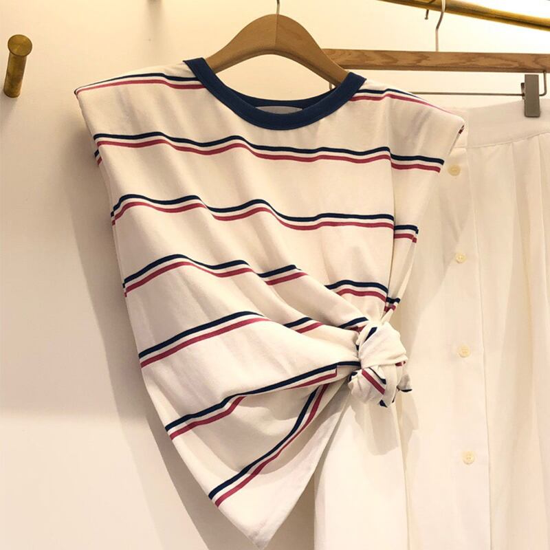 新品 サマーカラーラウンドネックカジュアルストライプノースリーブTシャツ 大人女子☆ 夏物 ⦿韓国 オルチャン K-pop アイドル ジャケット スーツ ワンピース カーディガン ニット フーディー トレーナー キャミソール スカート シャツ ブラウス 5B9938738