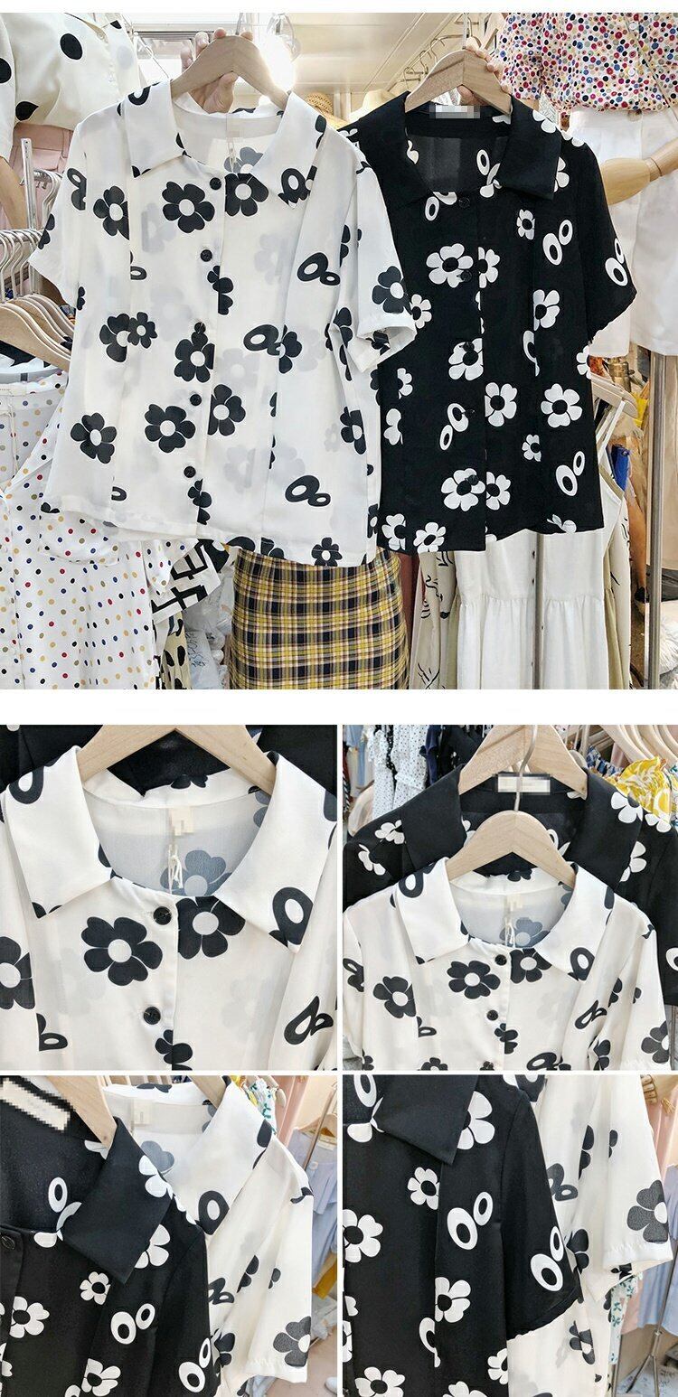 新品 ブラック白プリントシャツブラウストップス 大人女子☆ ホワイト スウィート ⦿韓国 オルチャン K-pop アイドル ジャケット スーツ ワンピース カーディガン ニット フーディー トレーナー キャミソール スカート シャツ ブラウス 5B1261355 | K clothig adult