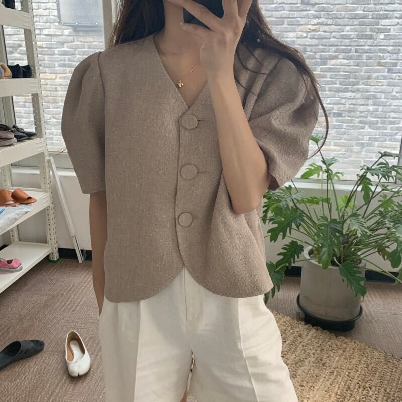 新品 スタンダードVネックショートスリーブシャツブラウス大人女子☆ レトロ ⦿韓国 オルチャン K-pop アイドル ジャケット スーツ ワンピース カーディガン ニット フーディー トレーナー キャミソール スカート シャツ ブラウス 5A7069922