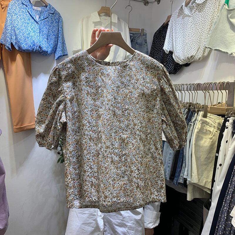 新品 花柄スリーブシャツブラウス半袖スタンダードブラウス 大人女子☆ ショート レトロ 半袖スリーブ ⦿韓国 オルチャン K-pop アイドル ジャケット スーツ ワンピース カーディガン ニット フーディー トレーナー キャミソール スカート シャツ ブラウス 5B9129130