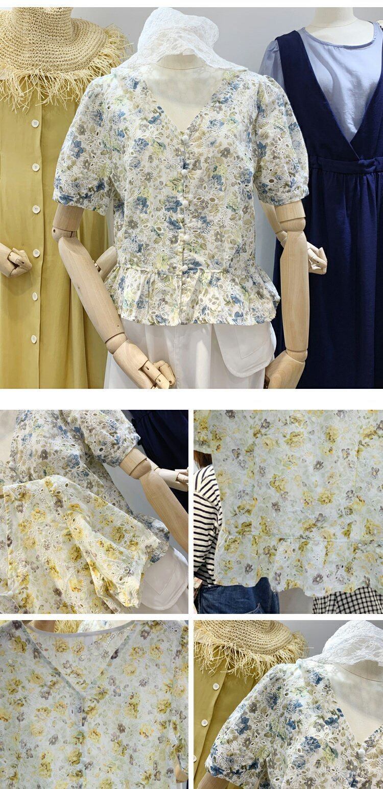 新品 Vネック花柄シャツブラウス レッド 刺繍 スウィート フラワーデザイン ⦿韓国 オルチャン K-pop アイドル ジャケット スーツ ワンピース カーディガン ニット フーディー トレーナー キャミソール スカート シャツ ブラウス 5B0636885