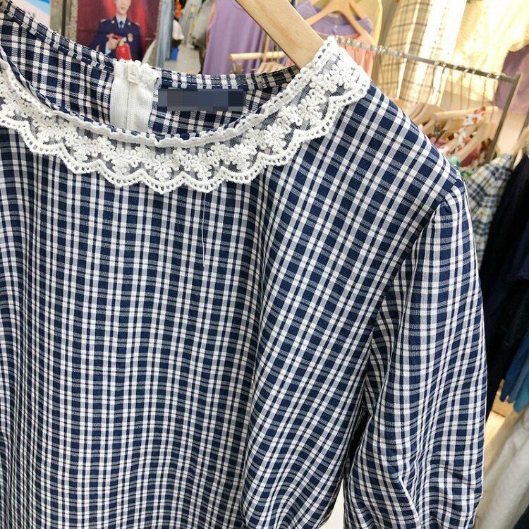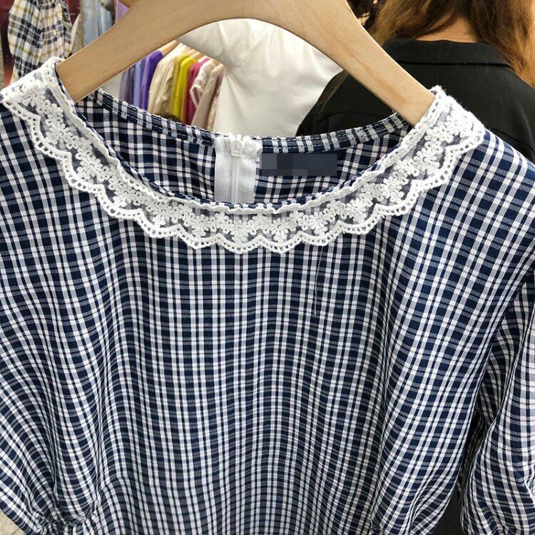 新品 サマーチェック柄カラーストレッチ★レースブラウス エラスティック 伸縮 夏物 ⦿韓国 オルチャン K-pop アイドル ジャケット スーツ ワンピース カーディガン ニット フーディー トレーナー キャミソール スカート シャツ ブラウス 5B5183459
