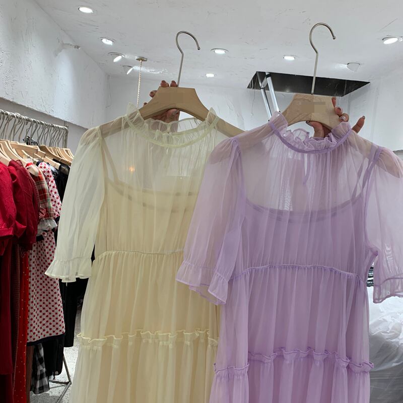 新品 サマードレス ワンピーススリーブメッシュプルオーバー 大人女子☆ コットン 夏物 ピュア ⦿韓国 オルチャン K-pop アイドル ジャケット スーツ ワンピース カーディガン ニット フーディー トレーナー キャミソール スカート シャツ ブラウス 5B8804489
