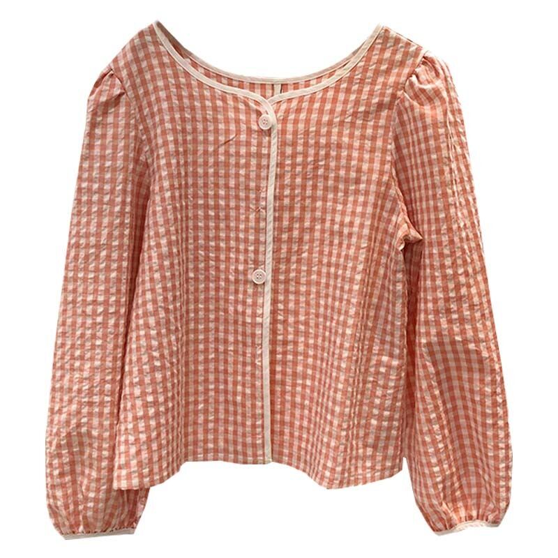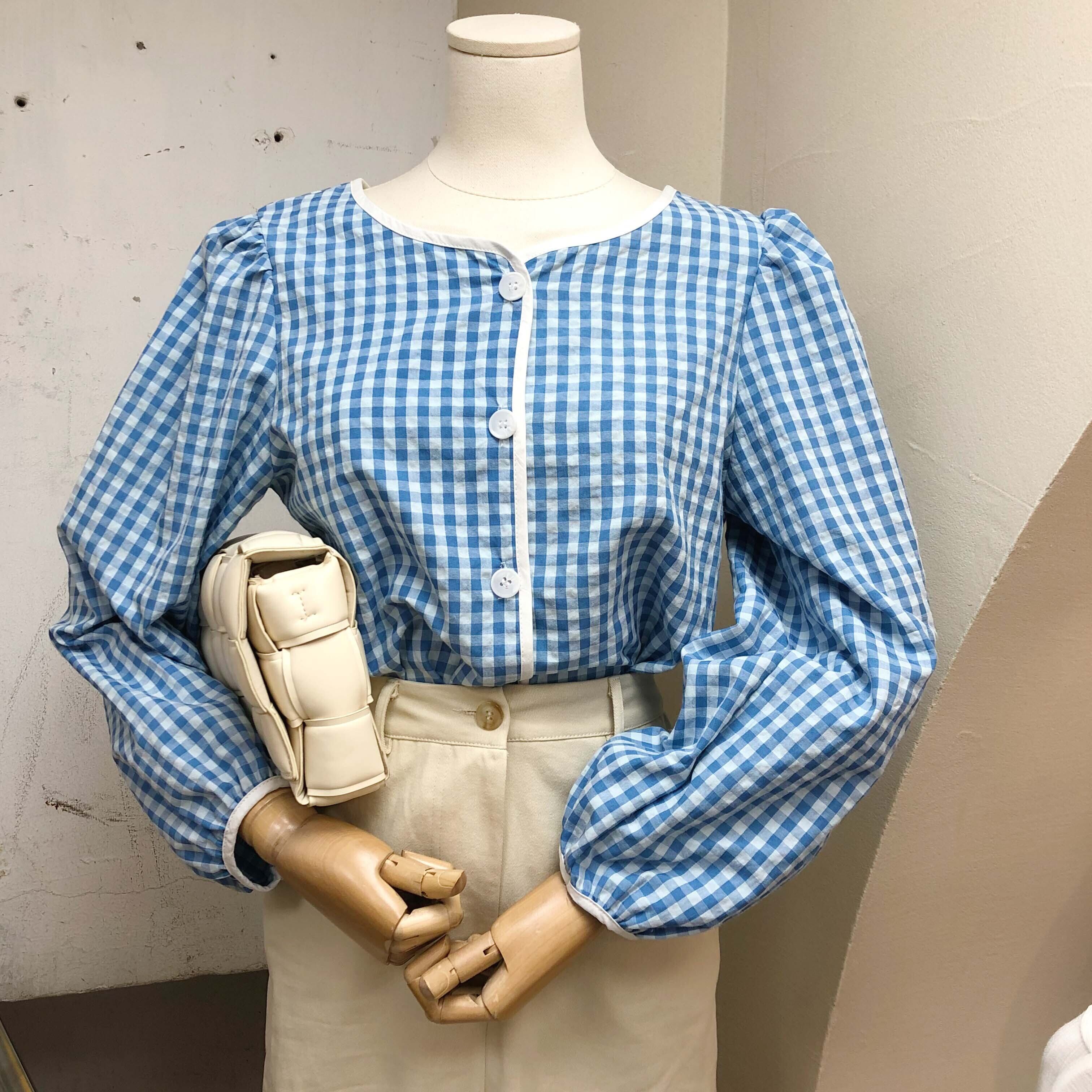 新品 チェック柄カラーラウンドネックスリーブブラウス スウィート ⦿韓国 オルチャン K-pop アイドル ジャケット スーツ ワンピース カーディガン ニット フーディー トレーナー キャミソール スカート シャツ ブラウス 5B8317507 | K clothig adult