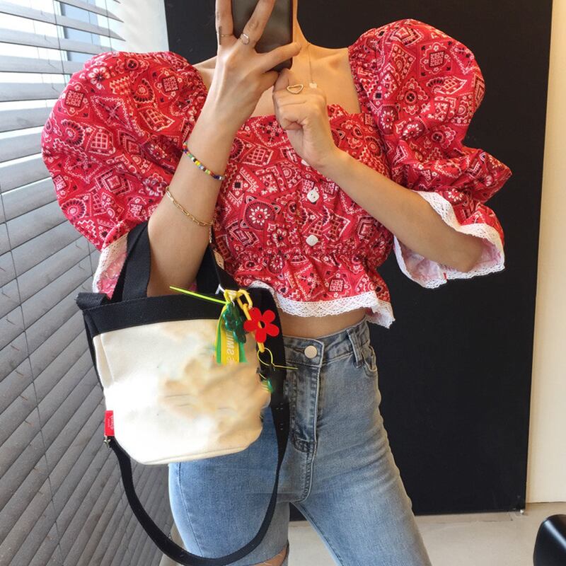 新品 スタンダードプリント柄スリーブシャツブラウススカート レトロ ふわふわ スクウェア ⦿韓国 オルチャン K-pop アイドル ジャケット スーツ ワンピース カーディガン ニット フーディー トレーナー キャミソール スカート シャツ ブラウス 5A7716718