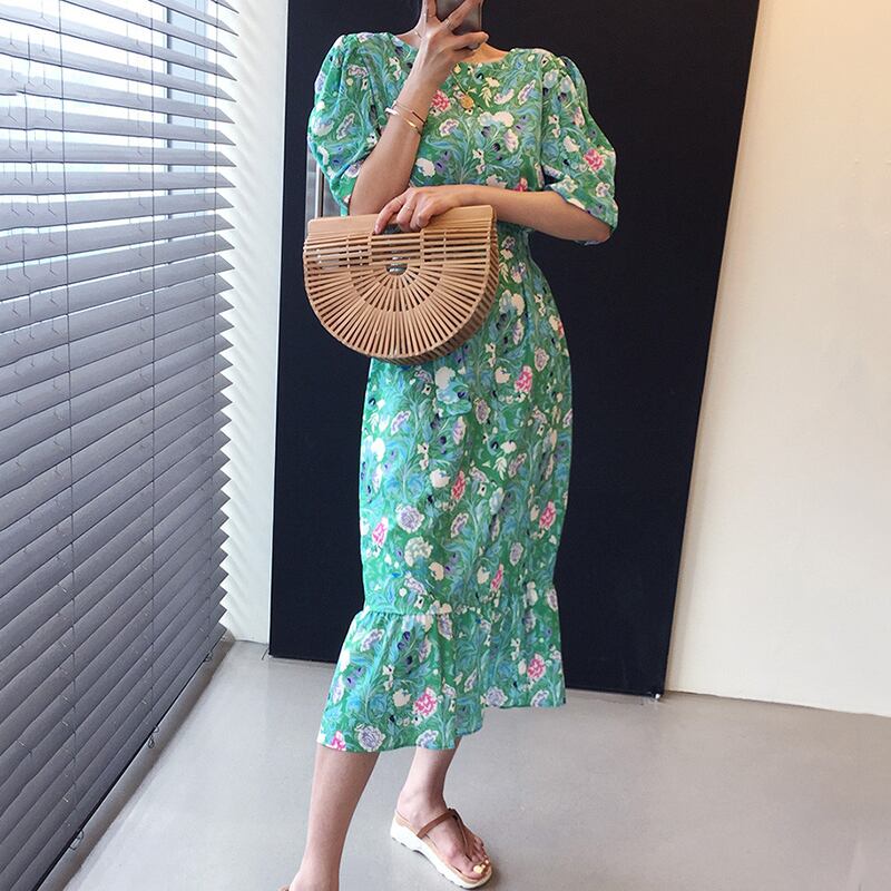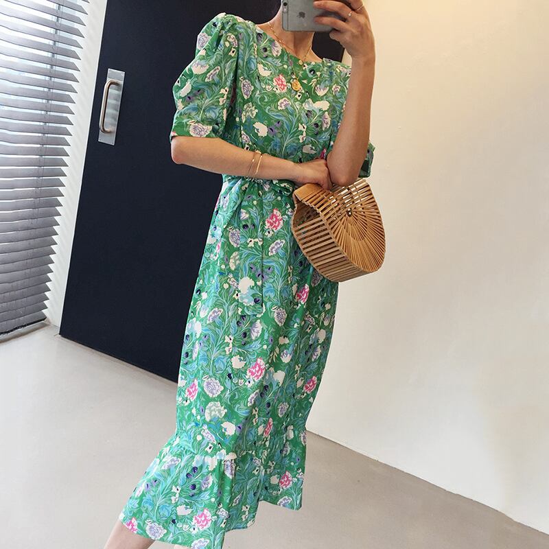 新品 スタンダード花柄♥カワイイ♥ラウンドネックスリムストラップ ★スリーブ大人女子☆ レトロ フラワーデザイン ⦿韓国 オルチャン K-pop アイドル ジャケット スーツ ワンピース カーディガン ニット フーディー トレーナー キャミソール スカート シャツ ブラウス 5A3795483