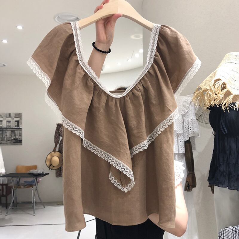 新品 レースシャツブラウスVネックブラウス スウィート ⦿韓国 オルチャン K-pop アイドル ジャケット スーツ ワンピース カーディガン ニット フーディー トレーナー キャミソール スカート シャツ ブラウス 5B6831992