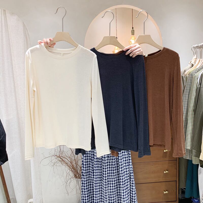 新品 ソリッド カラーラウンドネックカジュアル長袖スリーブシャツブラウス ロング ソリッドカラー ⦿韓国 オルチャン K-pop アイドル ジャケット スーツ ワンピース カーディガン ニット フーディー トレーナー キャミソール スカート シャツ ブラウス 5B2715001