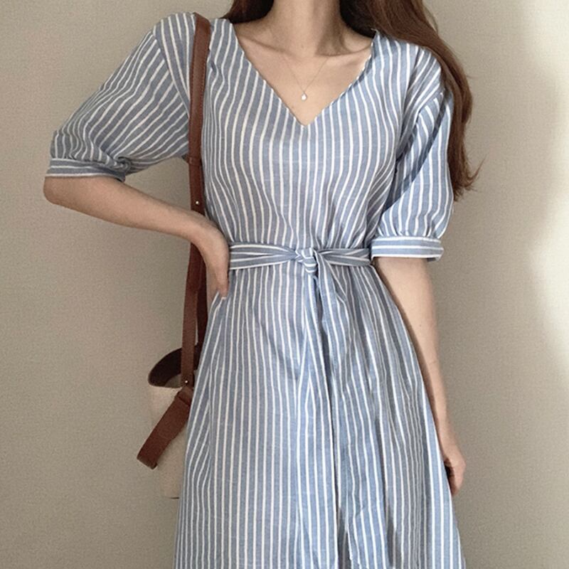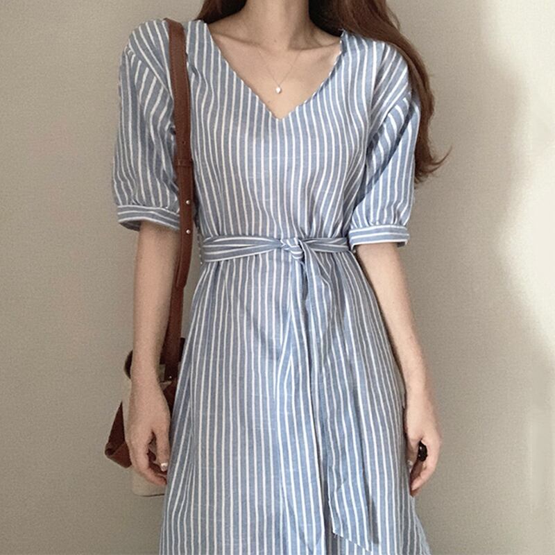 新品 スタンダードVネック★ストライプロングスカート レトロ レース レースアップ ⦿韓国 オルチャン K-pop アイドル ジャケット スーツ ワンピース カーディガン ニット フーディー トレーナー キャミソール スカート シャツ ブラウス 5A0918206