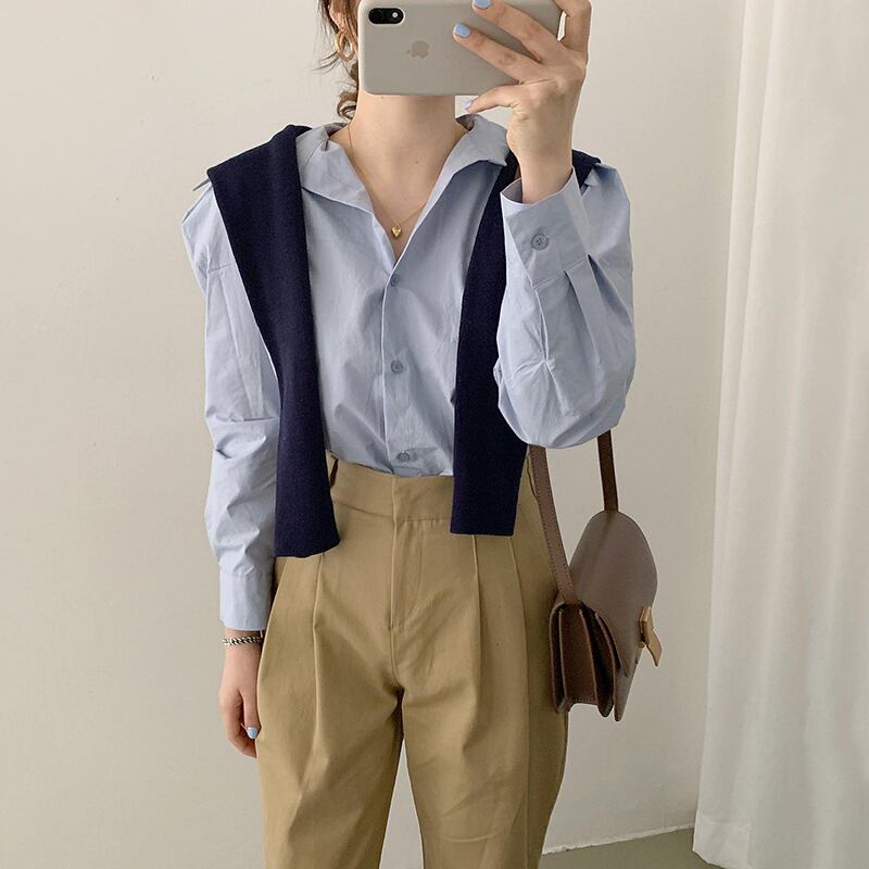 新品 スリーブシャツブラウススリムカジュアル大人女子☆ ⦿韓国 オルチャン K-pop アイドル ジャケット スーツ ワンピース カーディガン ニット フーディー トレーナー キャミソール スカート シャツ ブラウス 5A1623904 | K clothig adult