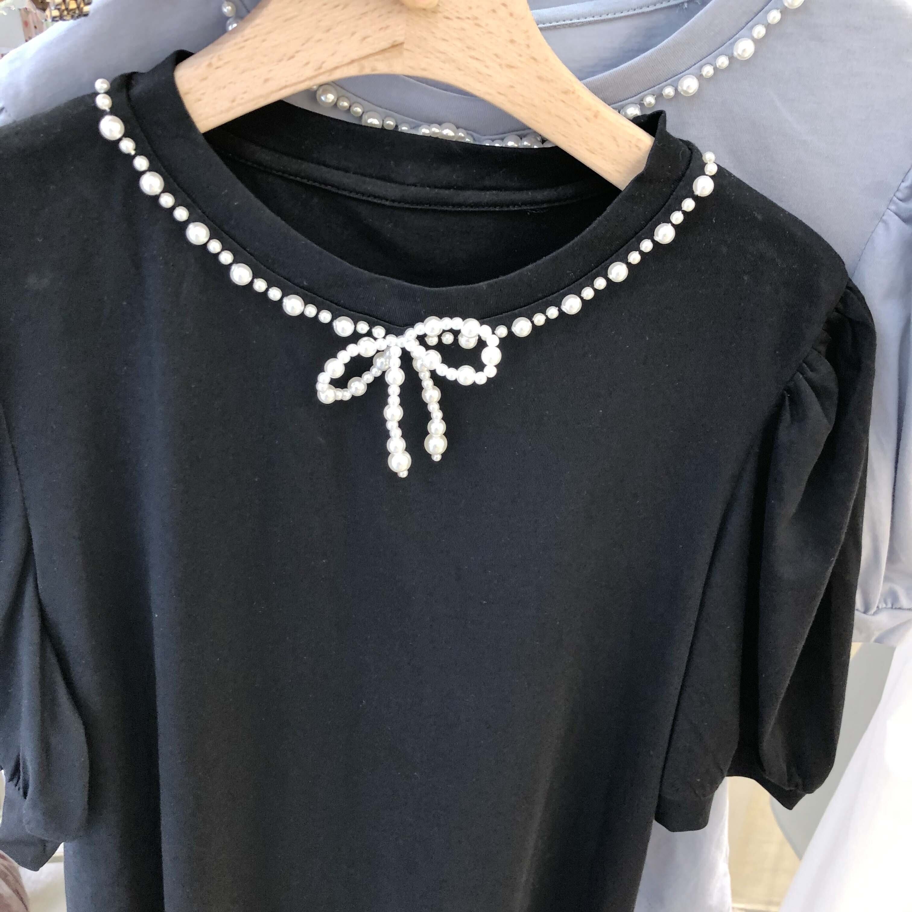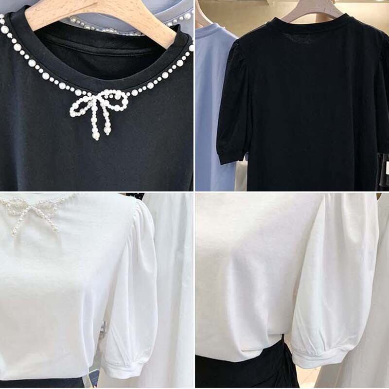 新品 サマーソリッド カラーラウンドネック♥カワイイ♥スリーブパールトップス スウィート ガーリー 夏物 真珠 ソリッドカラー ⦿韓国 オルチャン K-pop アイドル ジャケット スーツ ワンピース カーディガン ニット フーディー トレーナー キャミソール スカート シャツ ブラウス 5B5374279