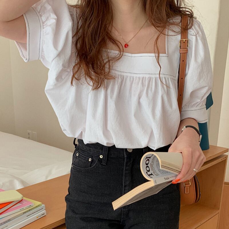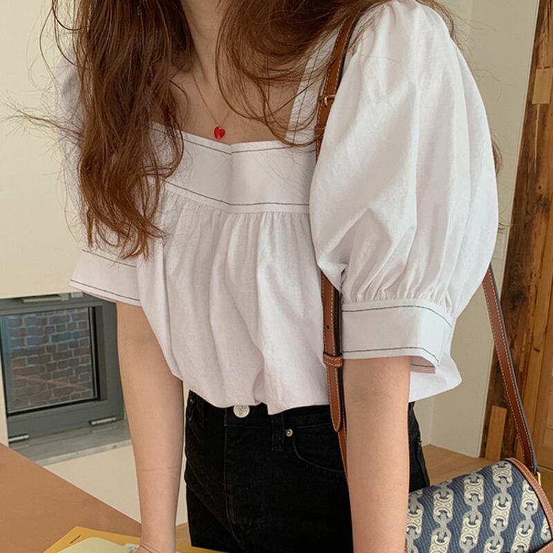 新品 スタンダードラインプリーツスリーブシャツブラウス大人女子☆ レトロ スクウェア ⦿韓国 オルチャン K-pop アイドル ジャケット スーツ ワンピース カーディガン ニット フーディー トレーナー キャミソール スカート シャツ ブラウス 5A3180297