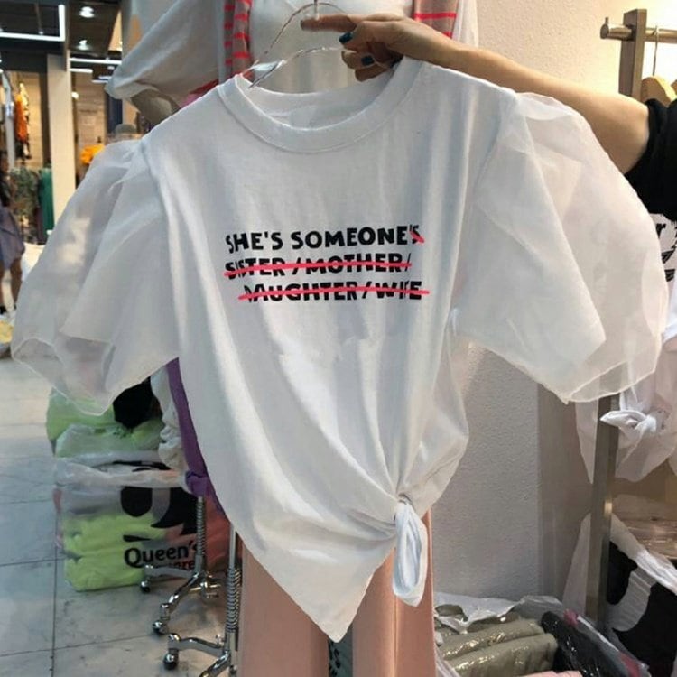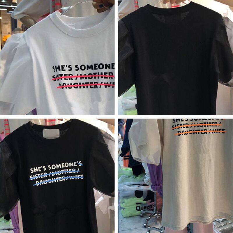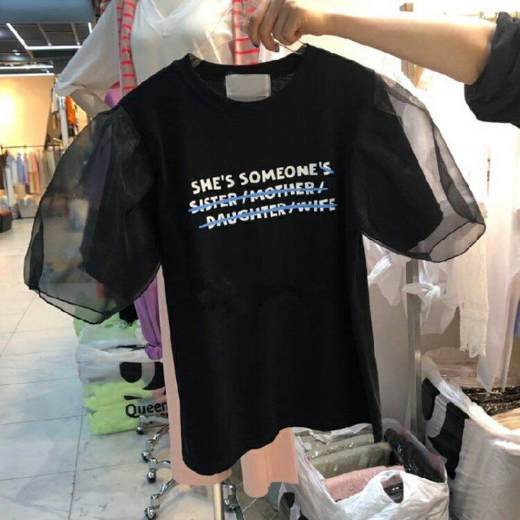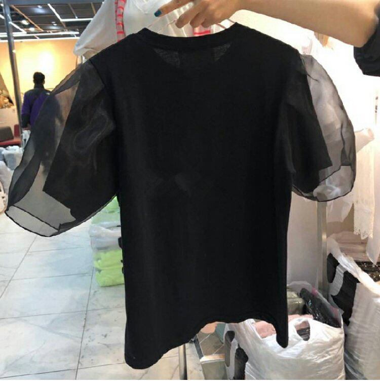 新品 カジュアルプリントメッシュスリーブTシャツ 大人女子☆ スウィート ステッチ ⦿韓国 オルチャン K-pop アイドル ジャケット スーツ ワンピース カーディガン ニット フーディー トレーナー キャミソール スカート シャツ ブラウス 5B2328345