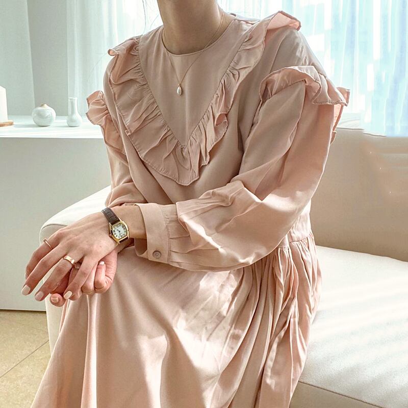 新品 ラウンドネックプリーツロング ステッチ ⦿韓国 オルチャン K-pop アイドル ジャケット スーツ ワンピース カーディガン ニット フーディー トレーナー キャミソール スカート シャツ ブラウス 5A3013296