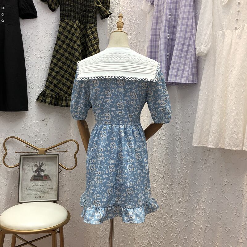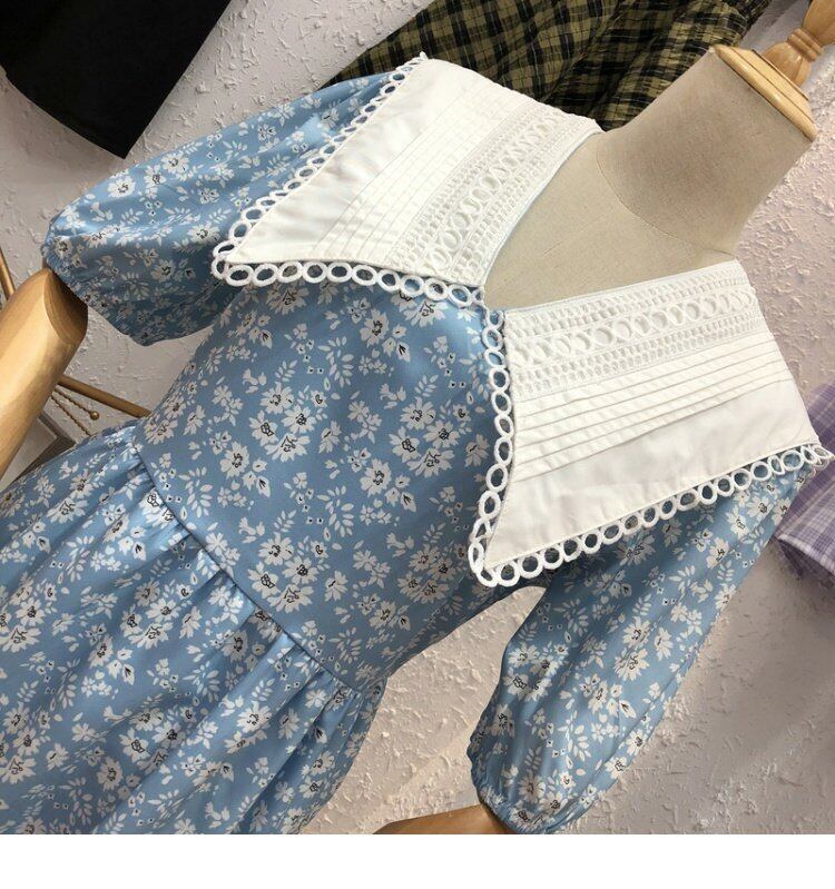 新品 ネイビー♡★スリーブ花柄ミディスカート ⦿韓国 オルチャン K-pop アイドル ジャケット スーツ ワンピース カーディガン ニット フーディー トレーナー キャミソール スカート シャツ ブラウス 5B4725065