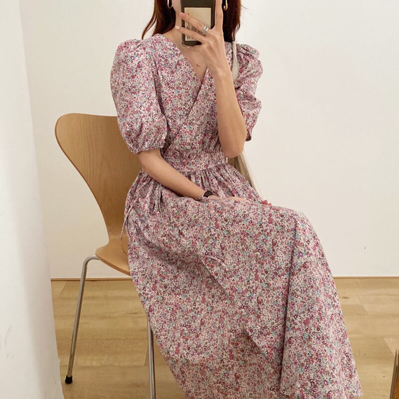新品 スタンダード花柄Vネック★スリーブワンピースロングスカート レトロ ⦿韓国 オルチャン K-pop アイドル ジャケット スーツ ワンピース カーディガン ニット フーディー トレーナー キャミソール スカート シャツ ブラウス 5A2970988 | K clothig adult