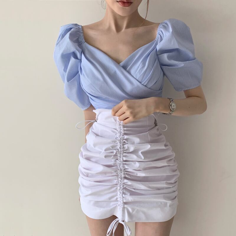 新品 スタンダードVネックスリーブシャツブラウスプリーツギャザー今年流行☆スカート レトロ ⦿韓国 オルチャン K-pop アイドル ジャケット スーツ ワンピース カーディガン ニット フーディー トレーナー キャミソール スカート シャツ ブラウス 5A8319622 | K clothig adult
