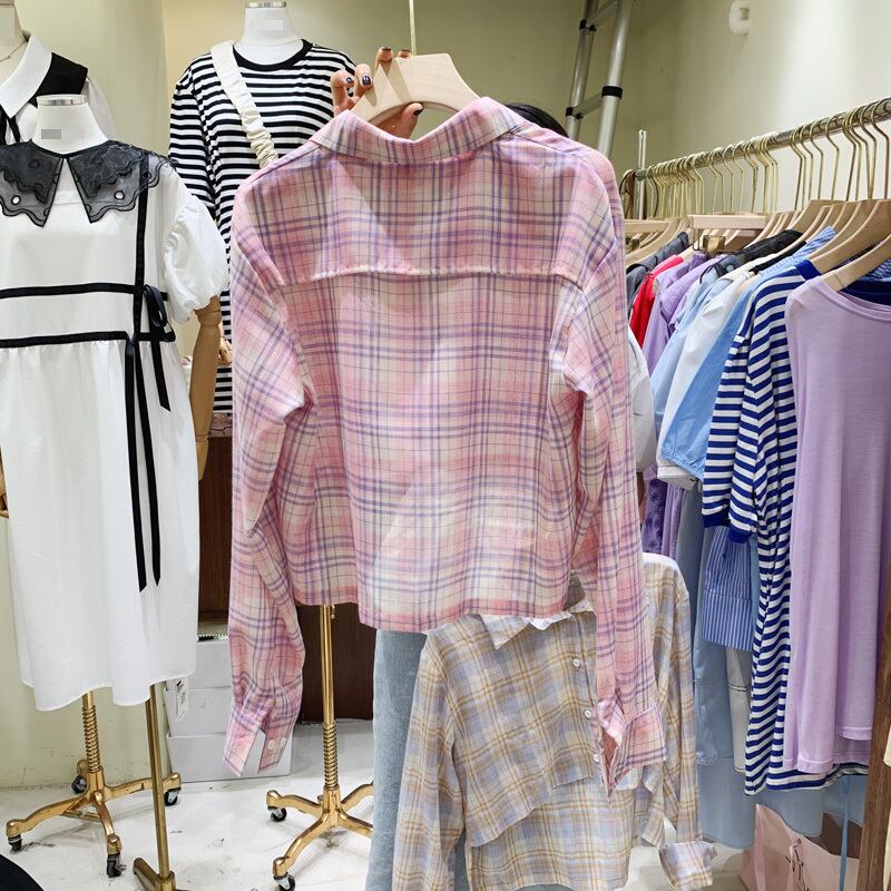 新品 カラーショートチェック柄シャツブラウスカーディガン コットン ピュア ⦿韓国 オルチャン K-pop アイドル ジャケット スーツ ワンピース カーディガン ニット フーディー トレーナー キャミソール スカート シャツ ブラウス 5B1802885 | K clothig adult