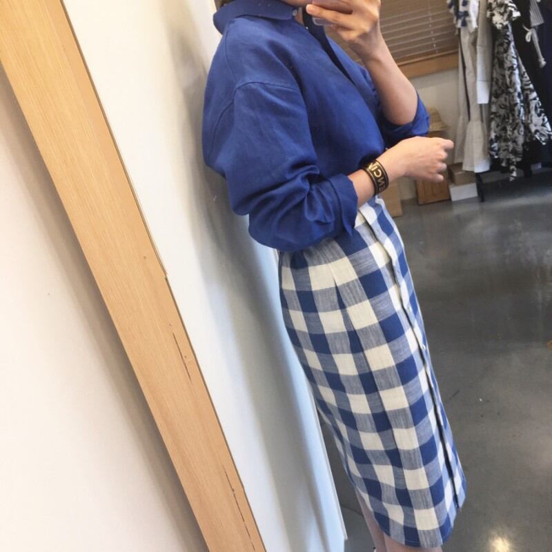 新品 ♡シャツブラウスサイドチェック柄スカート ロング エレガント ⦿韓国 オルチャン K-pop アイドル ジャケット スーツ ワンピース カーディガン ニット フーディー トレーナー キャミソール スカート シャツ ブラウス 5A7659738